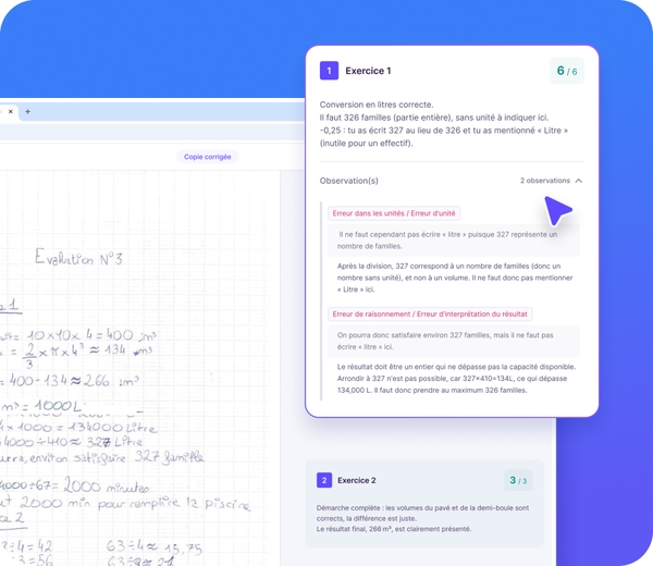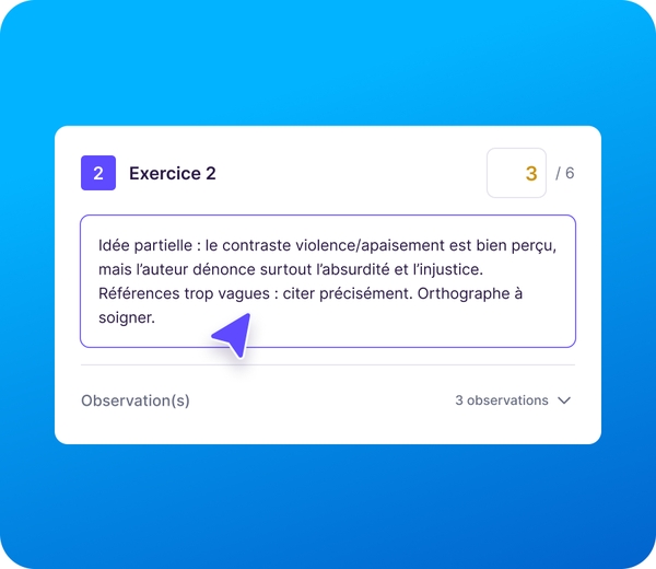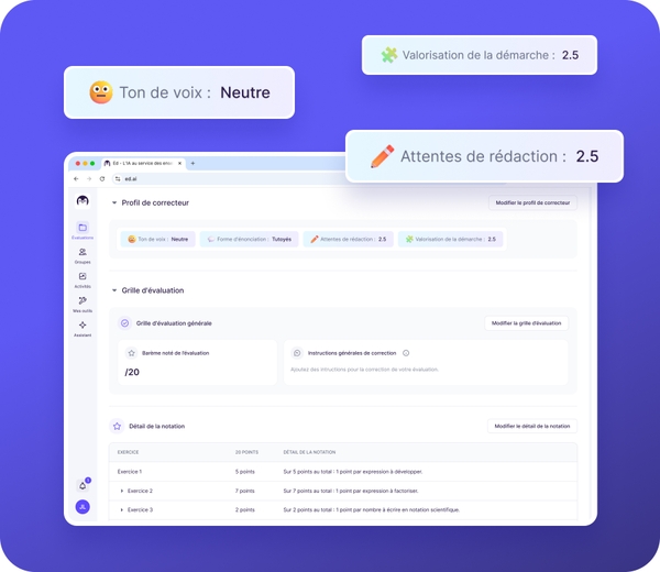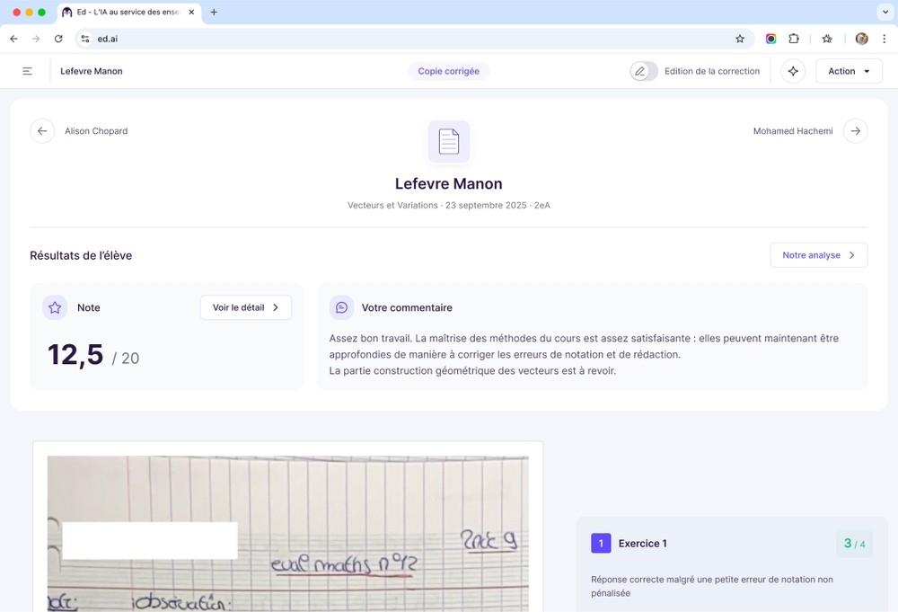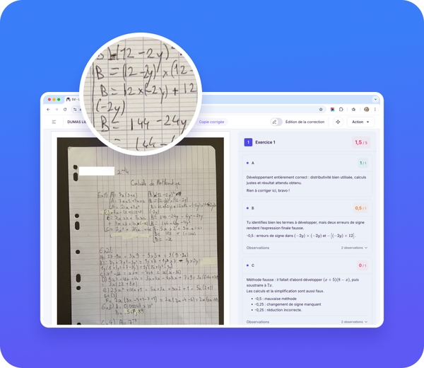Ed.ai révolutionne la correction à deux niveaux : réduction du temps de correction, et retour élève ultra-détaillé, bien au-delà de la correction classique. Chaque commentaire et chaque point d’évaluation sont rigoureusement justifiés.